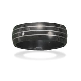 Black Stainless Steel Men's Ring with Line Design in the Band