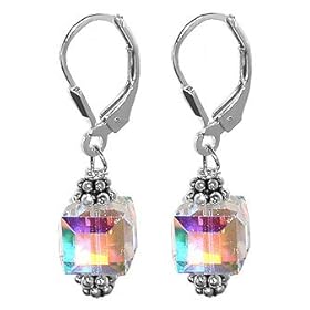 Features a pair rich and glittering 10 MM Swarovski Crystals beautifully decorated with Sterling Silver accents.